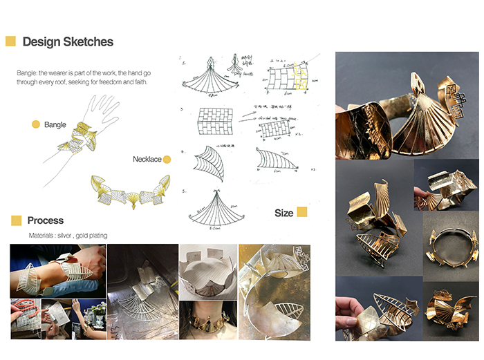 林同學(xué)從最基礎(chǔ)的手繪開始,林同學(xué)非常的刻苦和認(rèn)真,因為老家不在北京,加上掛念孩子,每周末都要從北京坐高鐵回老家,這樣周而往返了半年多的時間。因為心中有夢想,所以排除萬難,勇往直前。從手繪課到軟件課,到專業(yè)創(chuàng)作課,工藝制作課,林同學(xué)從未缺勤,非常努力和認(rèn)真,也展示出來了極大的熱情和天賦。對首飾設(shè)計的追求和不辭辛苦使得林同學(xué)逐漸的完成了3個系列的設(shè)計以及一個裝置設(shè)計。主題的選擇也都是林同學(xué)非常有生活和經(jīng)歷的,包括佛教主題、紫禁城主題等等。為了能夠給自己一個美好回憶和交代,林同學(xué)自己充當(dāng)模特把自己設(shè)計并制作的首飾成品拍攝成了大片做成了20頁的作品集。最終申請到了美國舊金山藝術(shù)大學(xué)首飾設(shè)計研究生,羅德島藝術(shù)設(shè)計學(xué)院在林同學(xué)托福不夠的情況下也給了“待定”,這也是對林同學(xué)的極大認(rèn)可和支持。